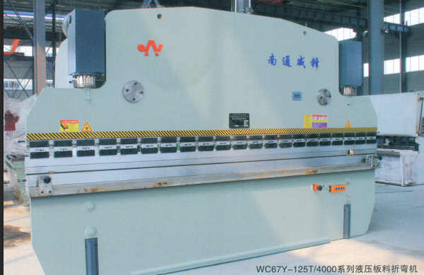 (5)滑块同步机构采用扭轴强迫同步。 (6)斜楔式的挠度补偿机构,以保证获得较高的折弯精度。