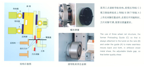 4、采用三点支承滚动导轨,消除支承间隙,提高剪切质量;