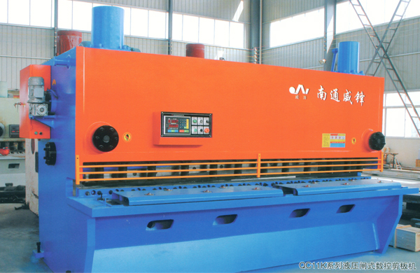 性能特点: 1、第二代液压剪板机; 2、全钢焊接结构,综合处理(振动时效、热处理)消除内应力,有很好的刚性与稳定性; 3、采用先进的集成式液压系统,可靠性好; 4、采用三点支承滚动导轨,消除支承间隙,提高剪切质量; 5、刀片间隙用手轮或电动调整、迅速、准确、方便; 6、矩形刀片,四个刃口均可使用,使用寿命长; 7、上刀架采用内倾结构,便于落料,并提高工件的精度; 8、具有分段剪切功能,具有灯光对线的功能; 9、机动后档料,数字显示; 10、后托料装置(可别选择配置)
